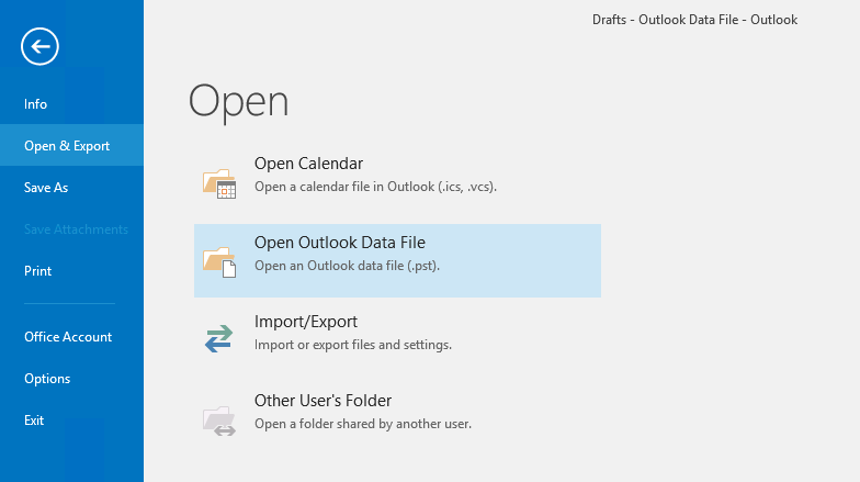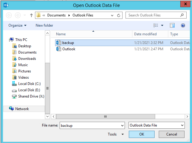 Open Backup in Microsoft Outlook