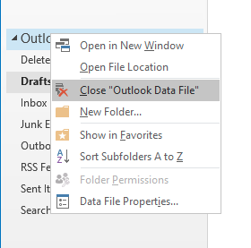 Once you have found the emails you needed, you can safely remove the backup from your Outlook by right-clicking on the title of the mailbox, and clicking “close ‘Mailbox Title’ ”